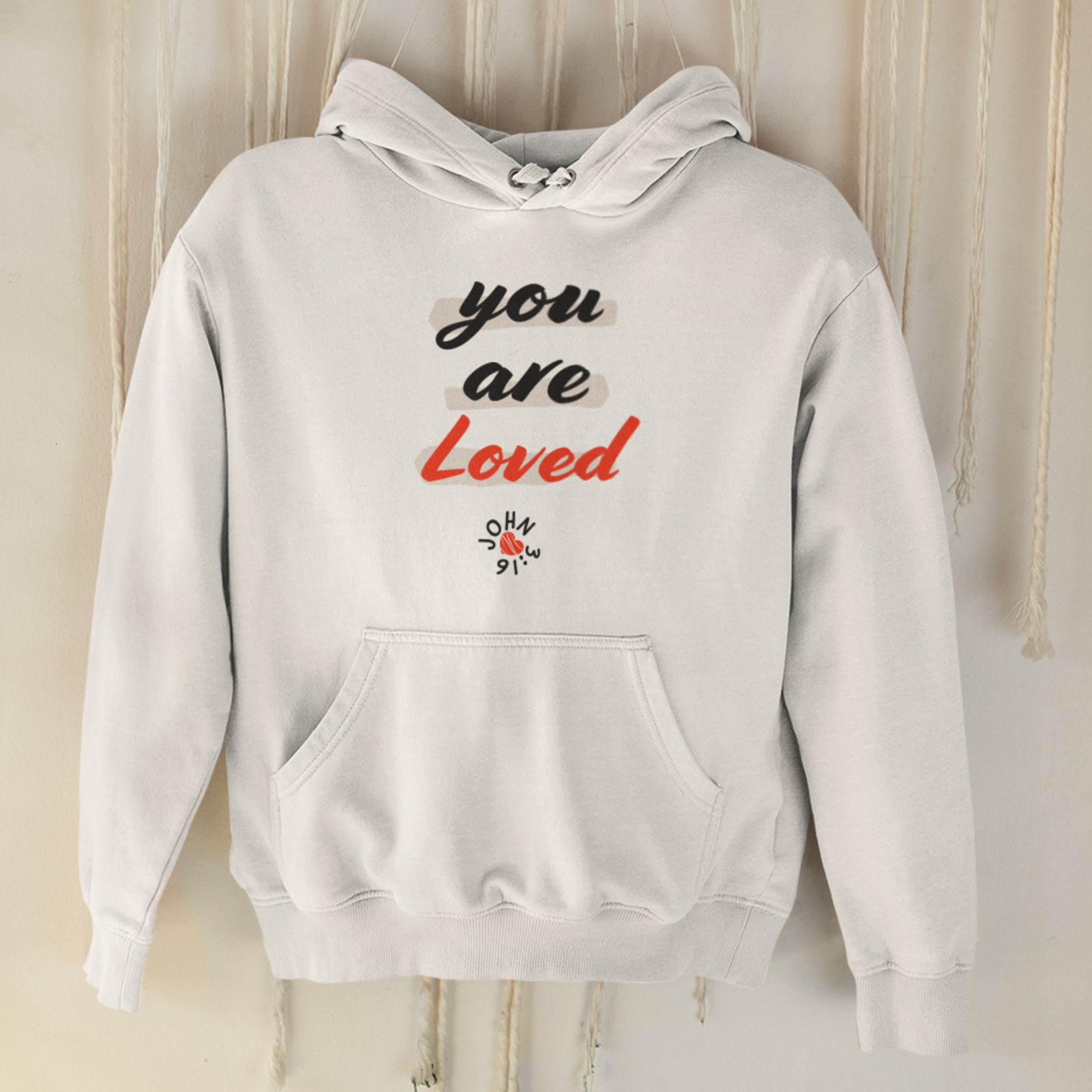 White "You are loved" unisex christian hooded sweatshirt
