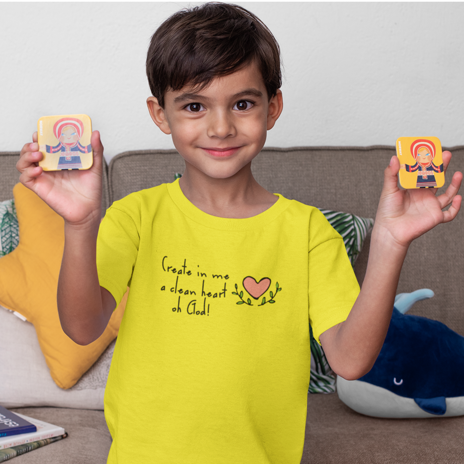 Yellow "Create in me a clean heart oh God" boys christian t-shirt